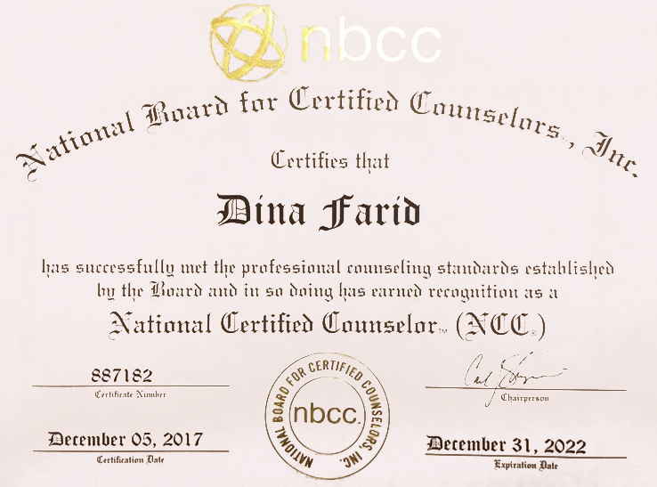 Hello, my name is Dina Farid, and I am a certified mental health counselor based in Cairo, Egypt.